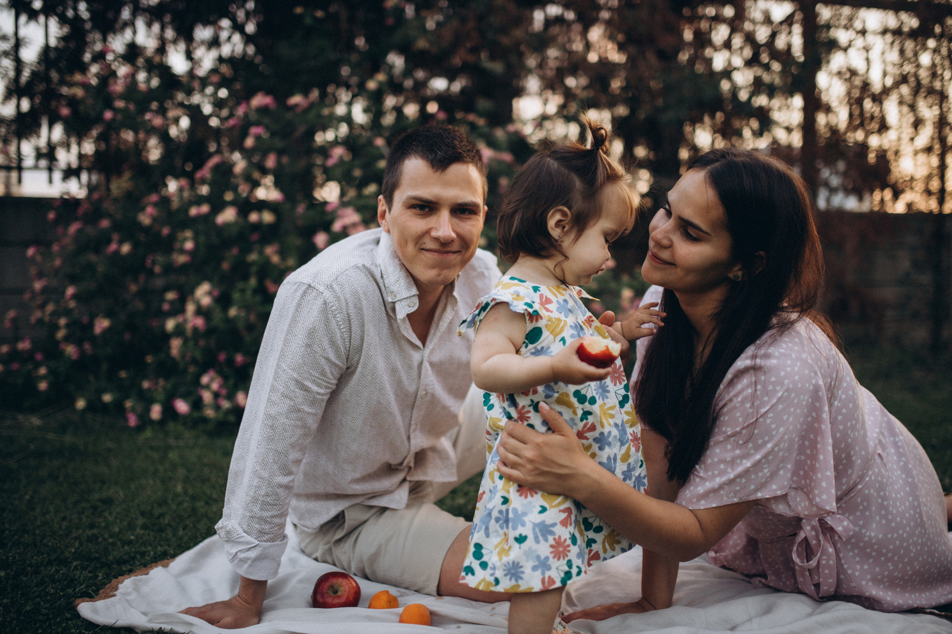 Вика и Влад с Соней на пляже